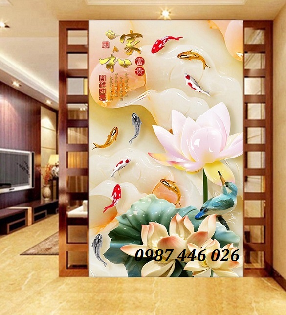 Gạch tranh 3d Hoa sen cá chép