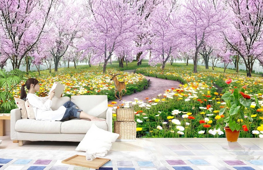 Tranh 3d vườn hoa mùa xuân