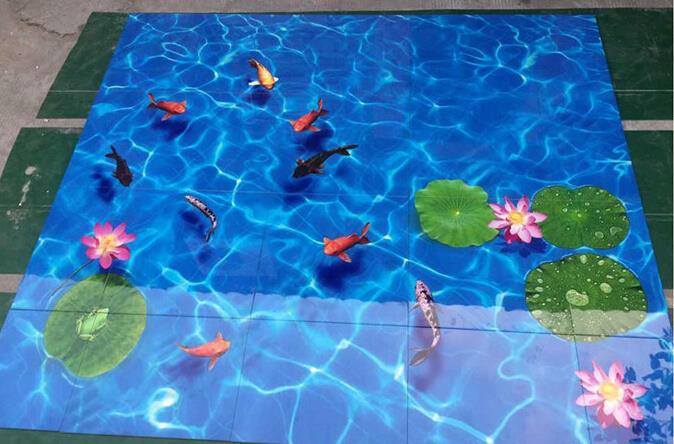 Sàn nhà cao cấp 3D trang trí có thể là mới đối với một số người nhưng đã là phong cách trang trí nội thất từ rất lâu ở thị trường các nước Châu Âu mới du nhập về Việt Nam. Thay vì nền nhà tắm đơn điệu với thiết kế đơn giản chỉ là ốp gạch tường nền truyền thống là những bộ tranh gạch men 3D cá heo hoa cỏ sống động đồng bộ với không gian nhà tắm.