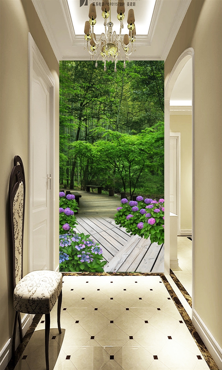 Nhà bạn không dài lắm có thể dùng những bức tranh gạch có chiều sâu về không gian như khu vườn, vườn hoa, khung của sổ.