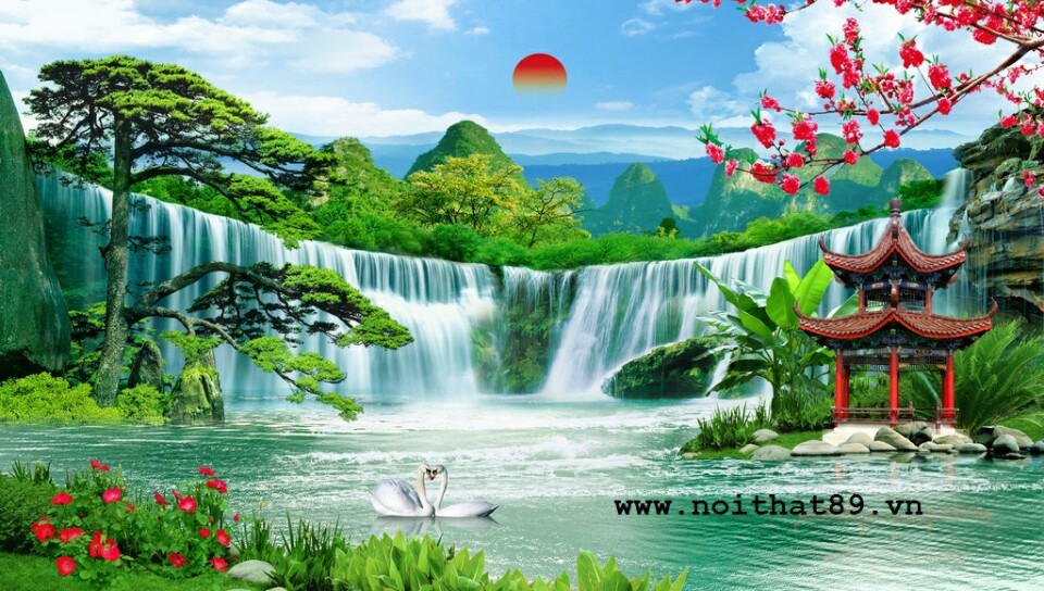 Gạch tranh 3D phong cảnh thác nước