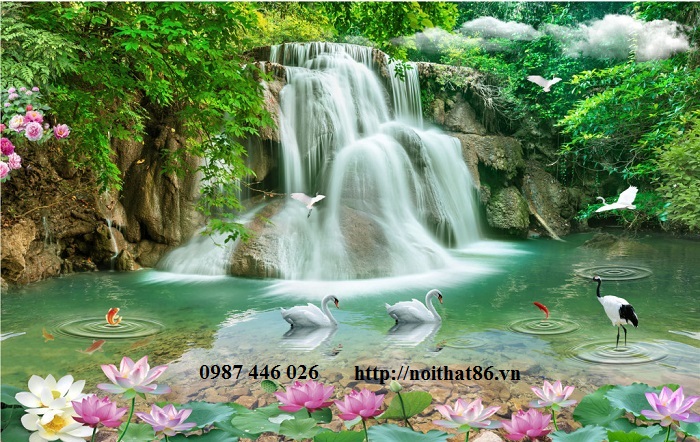 Tranh phong cảnh thác nước thiên nhiên: là một tranh những mẫu tranh gạch 3D được lựa chọn nhiều nhất vì sự linh hoạt về mẫu mã cũng như về phong thủy phù hợp với nhiều độ tuổi và mệnh. Không chỉ mang ý nghĩa phong thủy mà các chi tiết trên tranh có độ phù hợp với khá nhiều độ tuổi.
