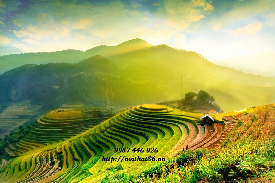 Gạch tranh phong cảnh ruộng bậc thang mặt trời