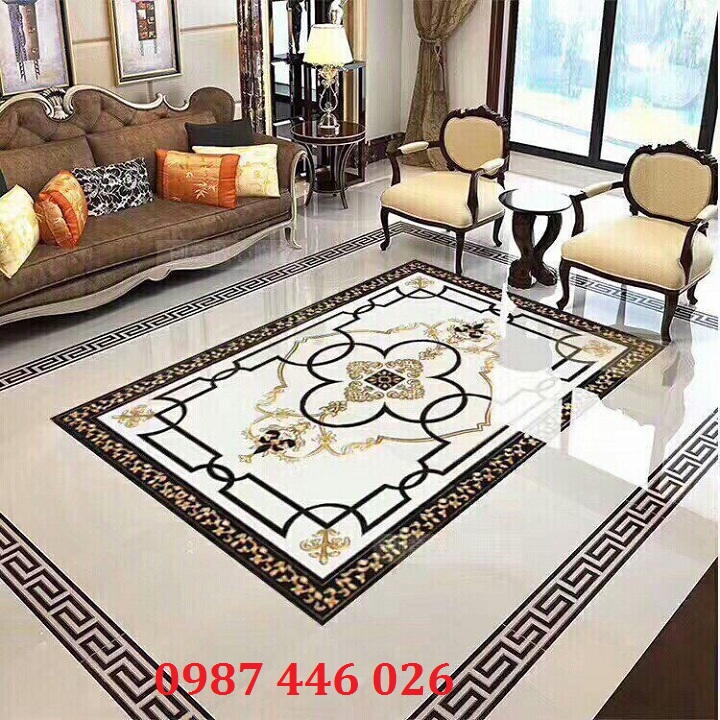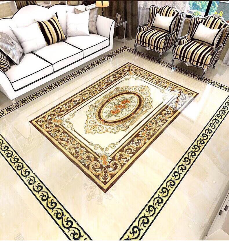 Một trong những chất liệu đặc biệt đang được sử dụng trang trí không gian lý tưởng trong nhà là những tấm thảm gạch hoa văn đặc biệt. Thảm gạch hay còn được gọi là gạch thảm 3d sử dụng trang trí mang lại sự khác biệt ấn tượng cho ngôi nhà. Chất liệu được sử dụng từ những viên gạch granit, hình ảnh màu sắc sử dụng công nghệ in vi tinh đặc biệt để giữ được màu sắc bền lâu, bề mặt được ép lớp kinh vơi thiết kế xử lý tinh xảo với từng đường nét chi tiết được khắc cẩn thận với lớp nhũ vàng lấp lánh.